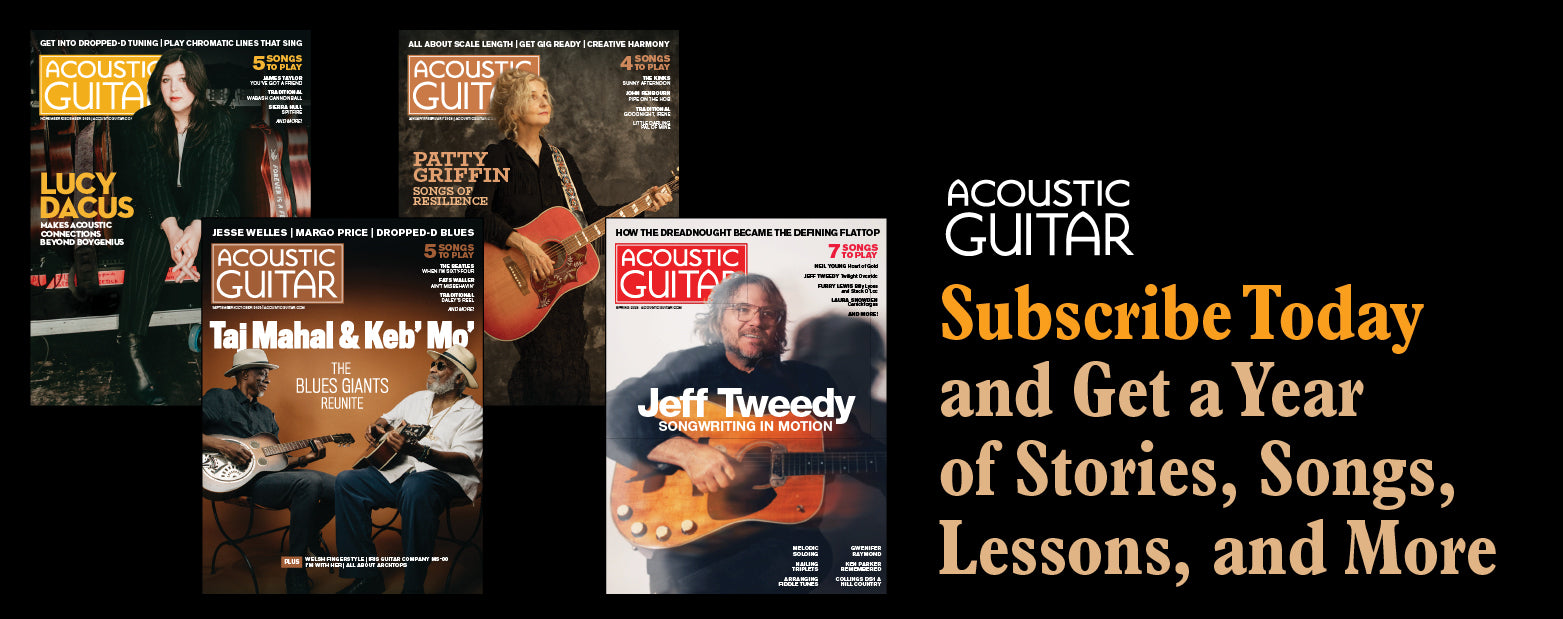 Every issue of Acoustic Guitar features full tab and notation of classic acoustic songs, plus lessons, reviews, and so much more.