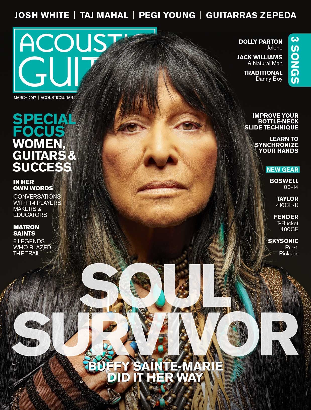 On the Cover: Folk icon and activist Buffy Sainte-Marie talks about her 50 plus years making music her way. Women, Guitar, and Success features more than 20 female players, makers, and educators — including Gillian Welch, Rosanne Cash, Kaki King, Melissa Etheridge, and Muriel Anderson — revealing their trials and triumphs.