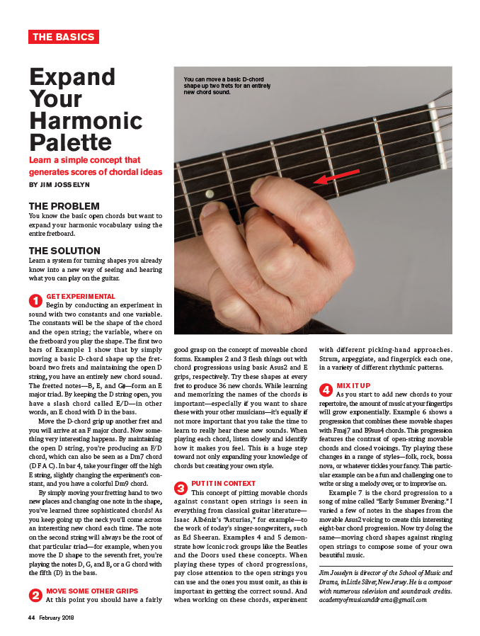 On the cover: Learn from the Best. An extensive and informative feature on Summer Guitar Getaways—guitar camps and workshops where players learn and hone skills to make them better musicians. Instructors ranging from Happy Traum and Jorma Kaukonen to Molly Tuttle, Frank Vignola, Bryan Sutton, and others, offer helpful advice on getting the most out your time at camp, and we list AG readers’ 25 top programs.