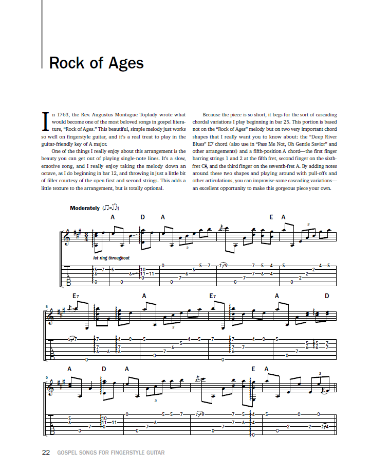 In Gospel Songs for Fingerstyle Guitar, virtuoso fingerstyle guitarist and clawhammer banjoist Steve Baughman shares a rich collection of 17 hymns and gospel songs, in a variety of tunings, arranged for solo guitar. Regardless of religious affiliation, Baughman’s refreshing approach to these timeless songs will provide an enjoyable challenge to intermediate-to-advanced guitarists seeking to expand their fingerstyle repertoire. Each selection includes tuning info, background information, technical tips, and humorous asides, as well as access to in-depth instructional videos performed by the author.