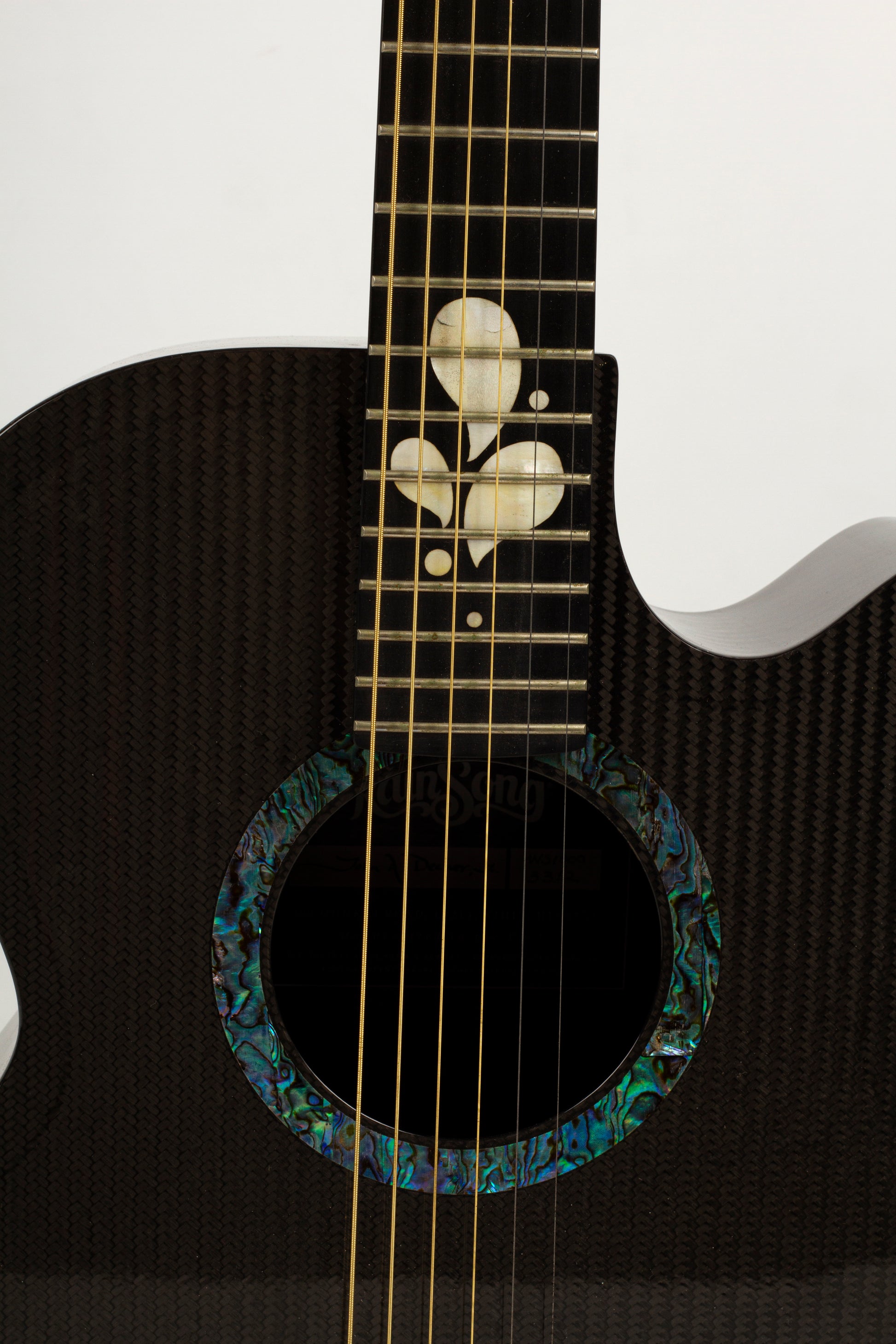 This distinctive instrument is made entirely of graphite, an outstanding alternative to dwindling wood resources, with rich acoustic properties. It was constructed using RainSong's Projection Tuned Layering process, which greatly reduces the weight of the soundboard while increasing its overall stiffness and response, producing a clear, resonant sound.